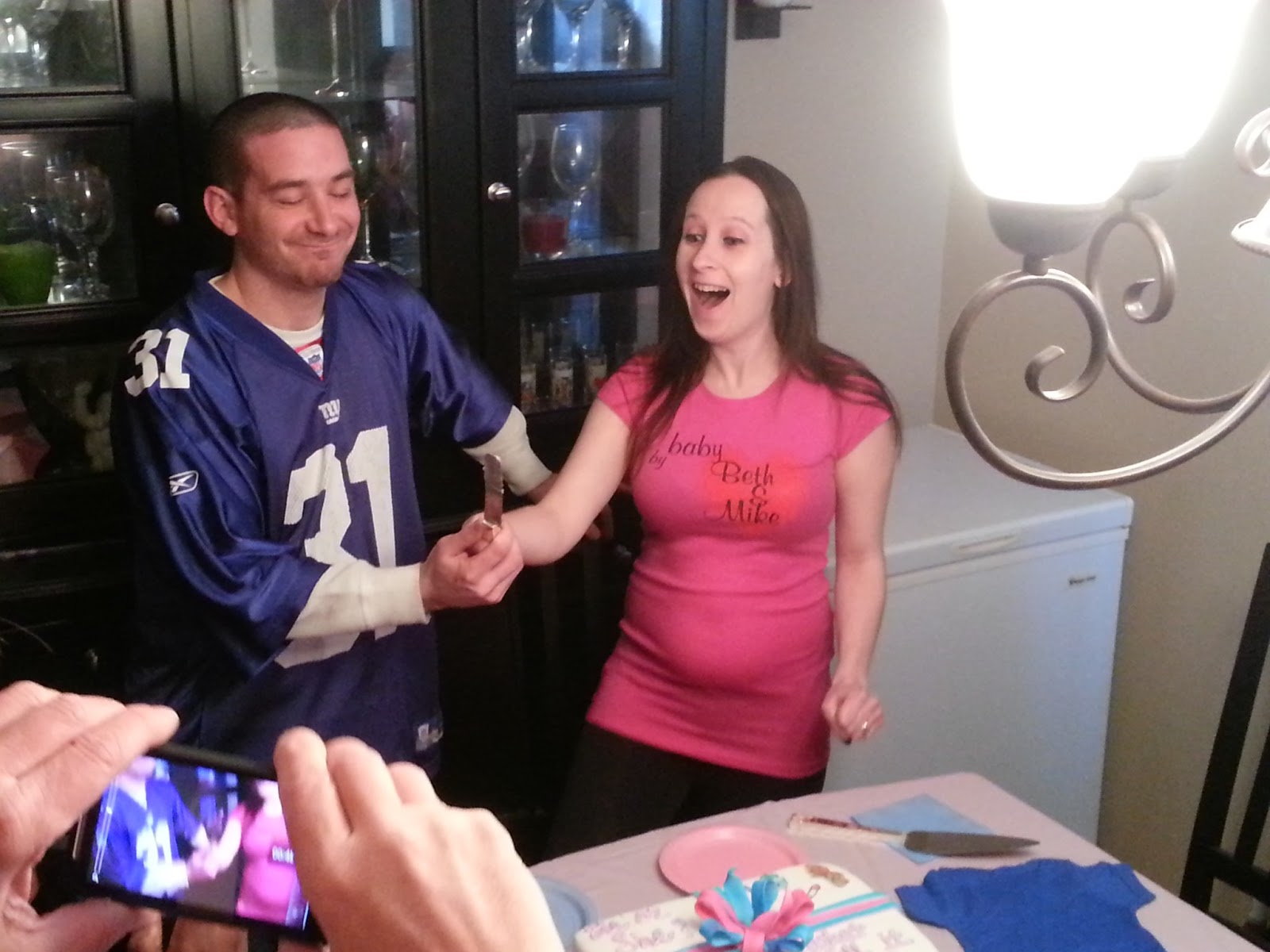 So we had some family and friends over. We invited a little over 20 people to the party, figuring that half would come, so 10 would be perfect in our tiny condo. Imagine our surprise when EVERYONE RSVP'd yes, and then they ALL showed up. That never happens, but we were pleased with everyone coming. Yes it was cramped, but we all had a blast! We played a game where we had baby bottles filled with beer and all the couples got together and the women 'fed' their men with the baby bottles and the first guy to finish all their beer won. That was soooooooo funny. All the men trying to drink the beer out of a newborn nipple bottle! My father in law gave up and poured his out into his solo cup and drank from there. Some men cheated and bit the nipple to open it up more...but EVERY guy had a sore jaw after the fact :)